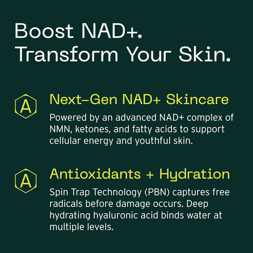 This powerful, yet lightweight moisturizer is formulated with NAD+ Complex, which works on a cellular level to promote healthier, more youthful skin. NAD+, or Nicotinamide Adenine Dinucleotide, is a molecule that gives cells energy. It's found inside the mitochondria of all living cells. As we age, NAD+ levels decrease, causing fewer skin cells to be created. The NAD+ Complex helps jumpstart those cells to encourage the creation of new cells. It's clinically proven to address all twelve signs of aging, including firmness and elasticity, lines and wrinkles, radiance and brightness, dark spots, skin texture and decreased volume. It also provides barrier support by bolstering its defenses.