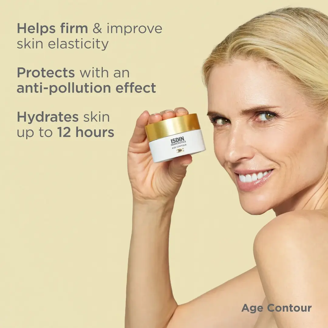 Age Contour is a luxurious face and neck cream that firms, hydrates, and protects skin from pollution. Its rich formula reduces fine lines and wrinkles, while visibly redefining the neck and jawline for smoother, firmer skin.