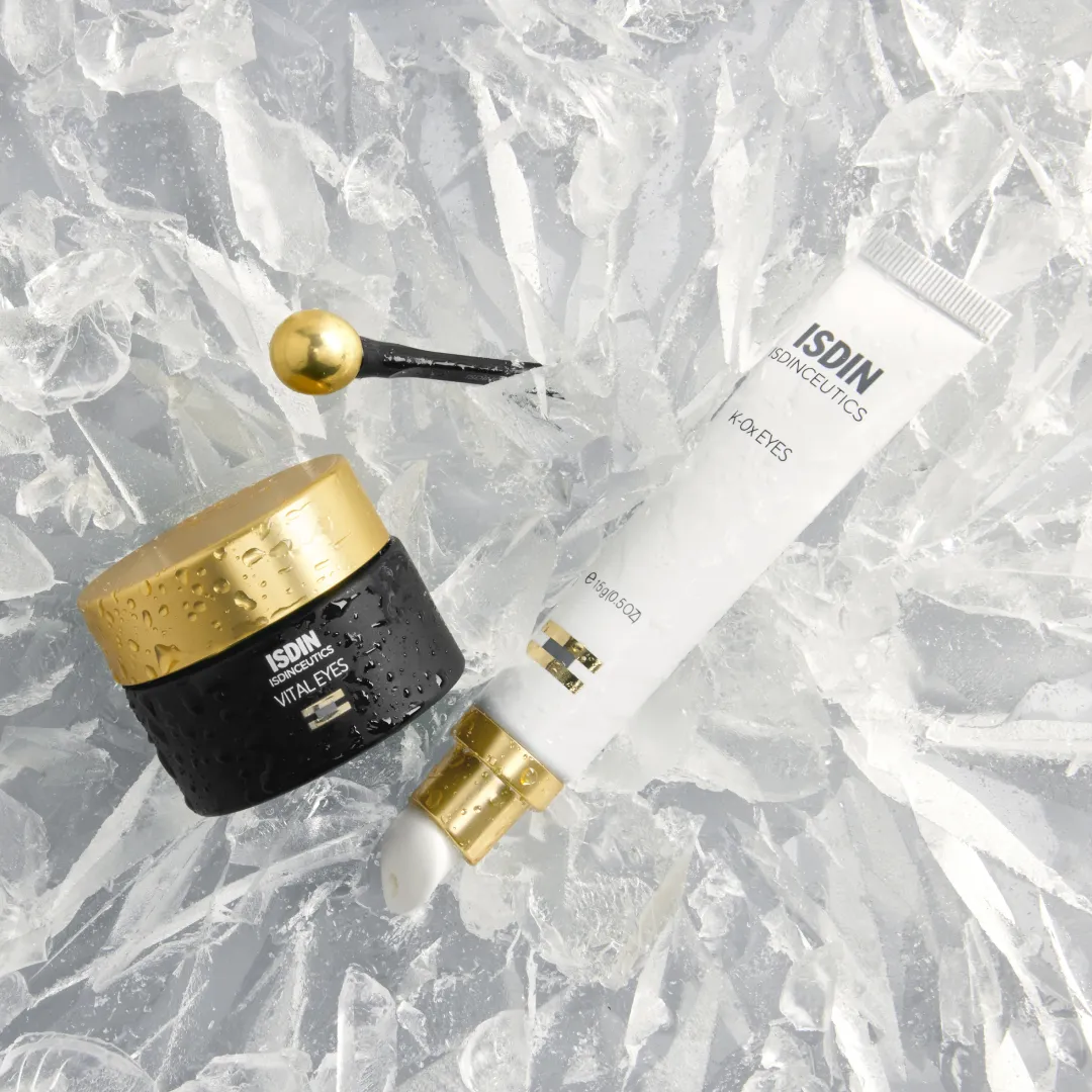 K-Ox Eyes is a revitalizing eye contour cream that helps reduce puffiness, brighten dark circles, and improve skin elasticity. Featuring a cooling ceramic applicator to boost microcirculation, it delivers a refreshed, smoother look with visible results in just 28 days.