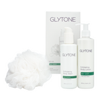 Daily body routine helps erase rough bumps and uneven skin texture by leveraging Free Acid Value Glycolic Acid. This 2-step kit includes Exfoliating Body Wash, Exfoliating Body Lotion and a bath pouf to reveal softer, smoother and radiant skin.
