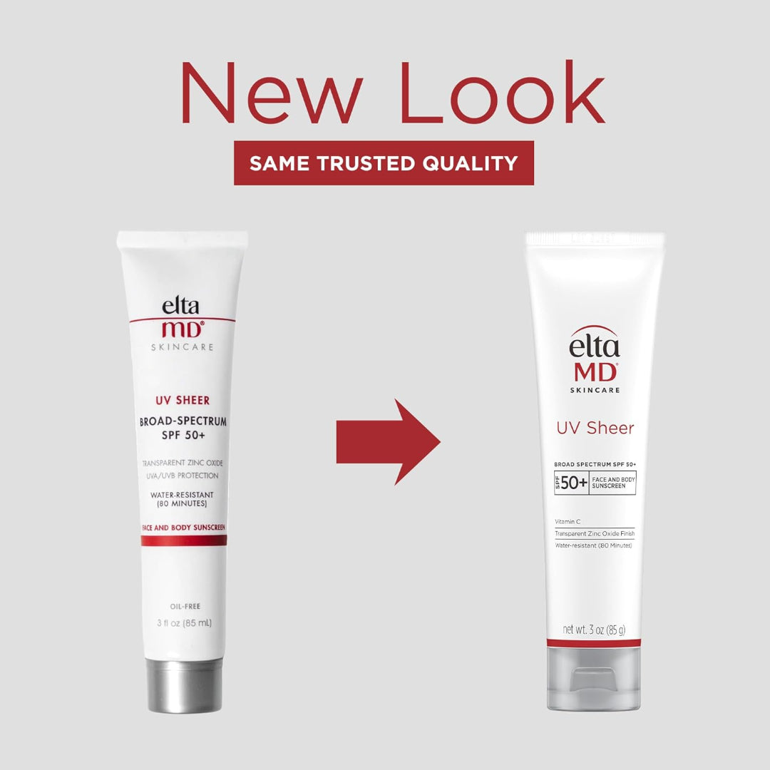 EltaMD UV Sheer Broad-Spectrum SPF 50+ sunscreen provides excellent protection against UVA (aging) and UVB (burning) rays. It is water-resistant (80 minutes). (1.7 fl oz/50 mL) (3.0 fl oz/85 mL)