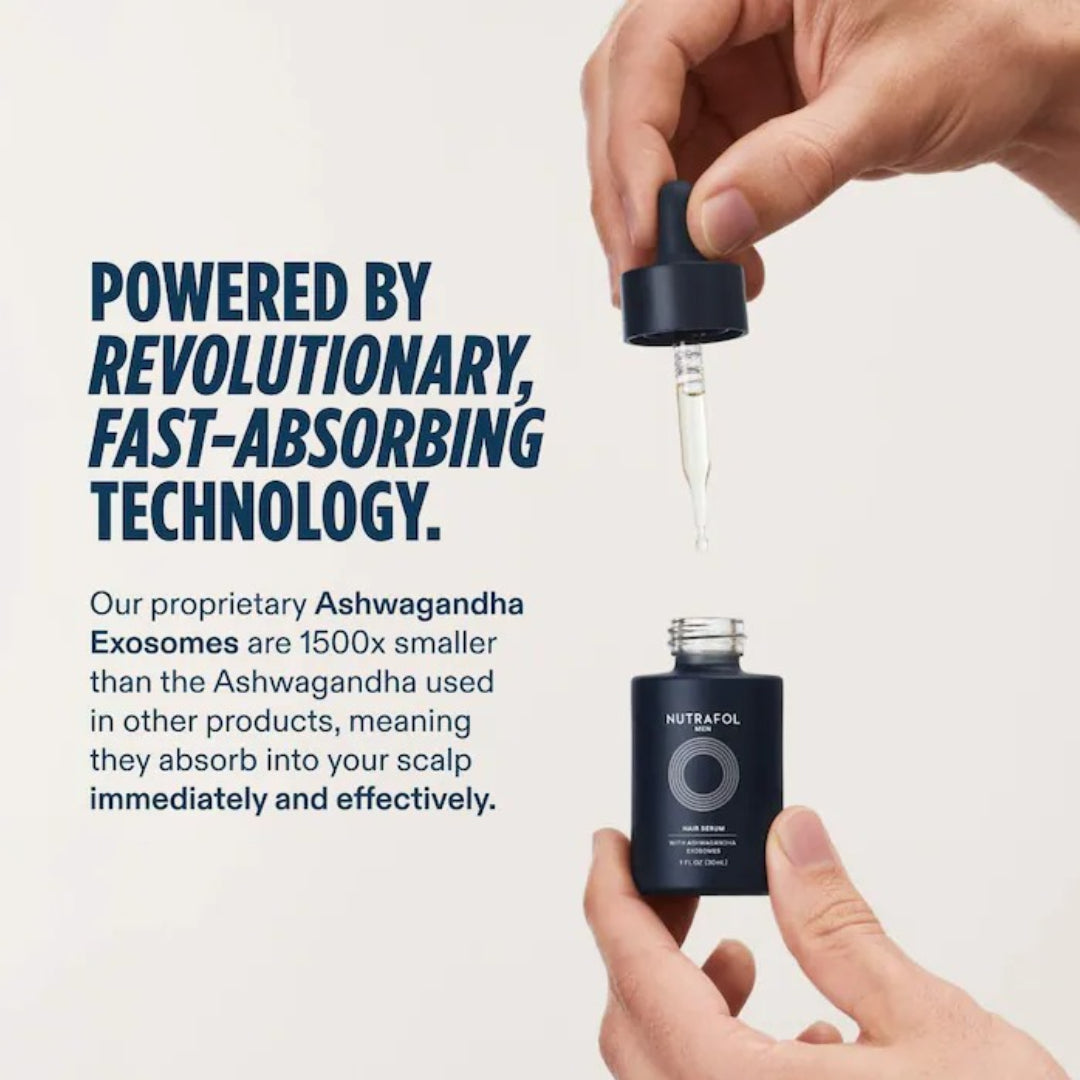 A lightweight, restorative hair serum with patent-pending Ashwagandha Exosomes replenishes nutrients directly at the scalp to support visible density and hair strength. For best results, keep consistent and pair with a daily Nutraceutical regimen.1-3